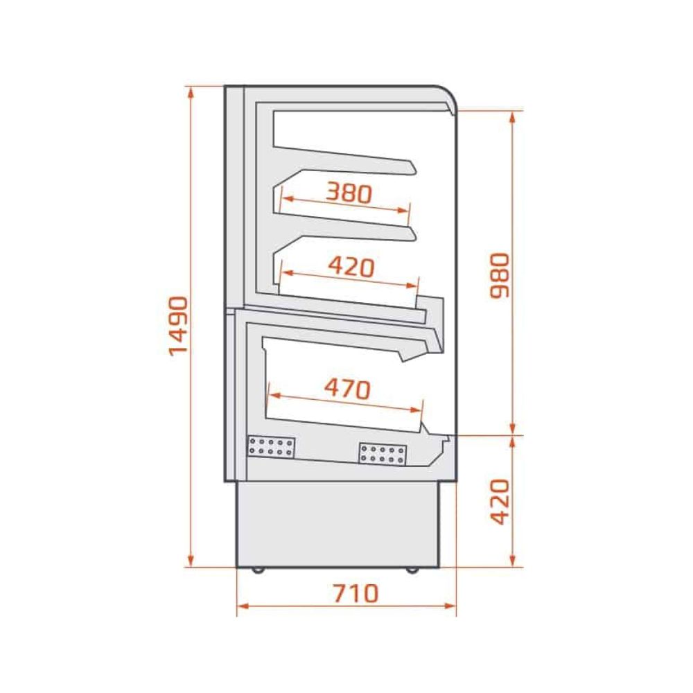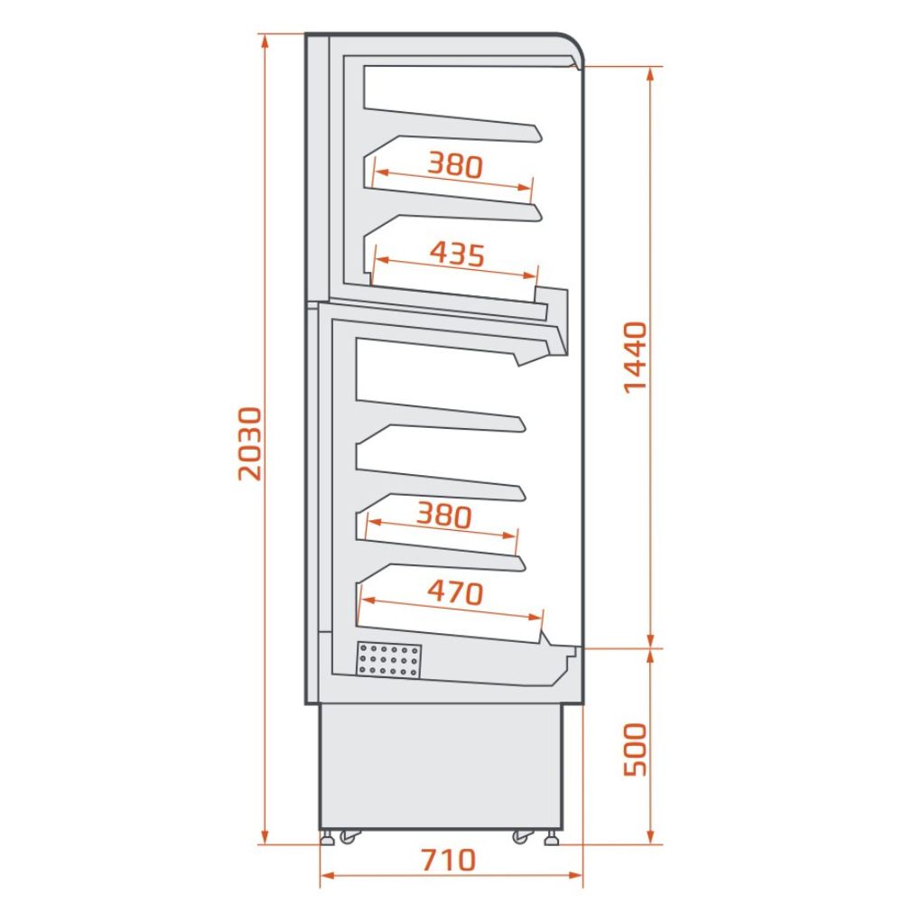 Monitoimihylly itsepalveluun, jossa yhdistyvät lämpö- ja kylmähylly. Erilaiset tuotteet saadaan aseteltua samaan myyntikalusteeseen lämpötilavaatimukset huomioiden. Lämpimien take away -tuotteiden rinnalle aukeaa uusi mahdollisuus myydä myös kylmätuotteita samasta myyntikalusteesta. Sopivan kokoinen kaluste moneen paikkaan: tuotteita mahtuu riittävästi esille ja tuotteiden kiertoaika on sopiva.