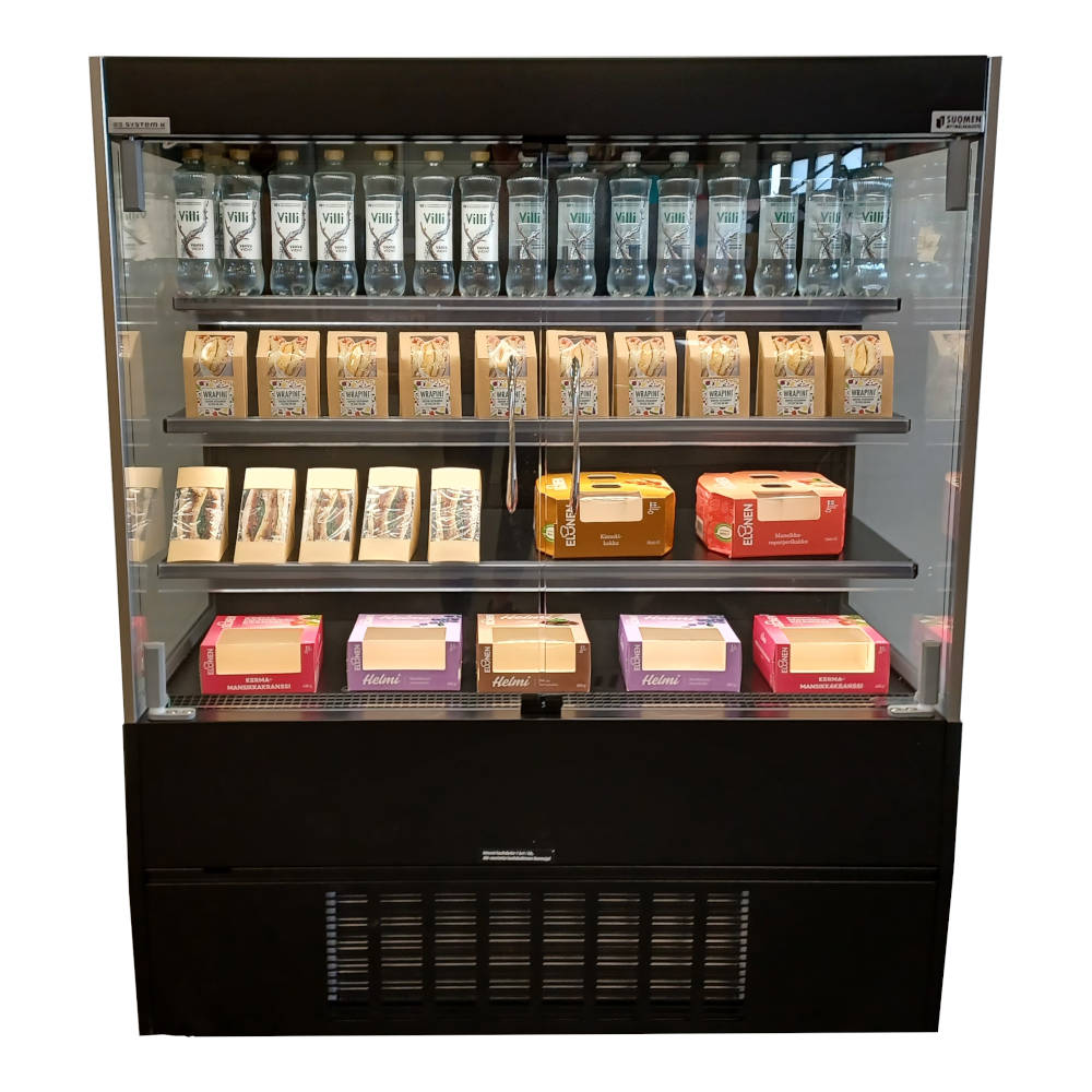 Omakoneinen, kolmitasoinen kylmähylly saranaovilla herätemyyntiin. Energiatehokas herätemyyntikaluste vakaalla lämpötilalla. Mia-kylmähyllysarjasta rakennettavissa näyttäviä saarekekokonaisuuksia kylmillä tai neutraaleilla kulmamoduleilla. Näyttävä kolmitaso myös lämpötilaherkille elintarvikkeille, kuten sushille.