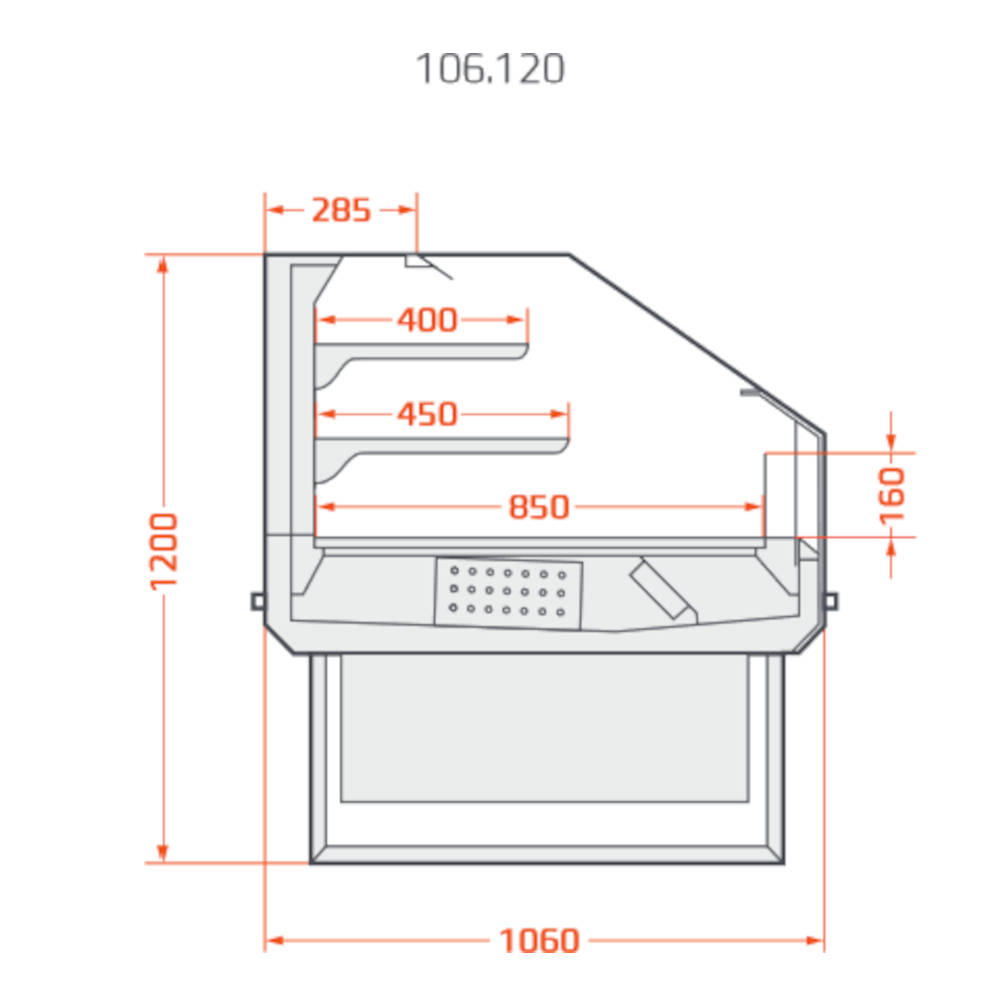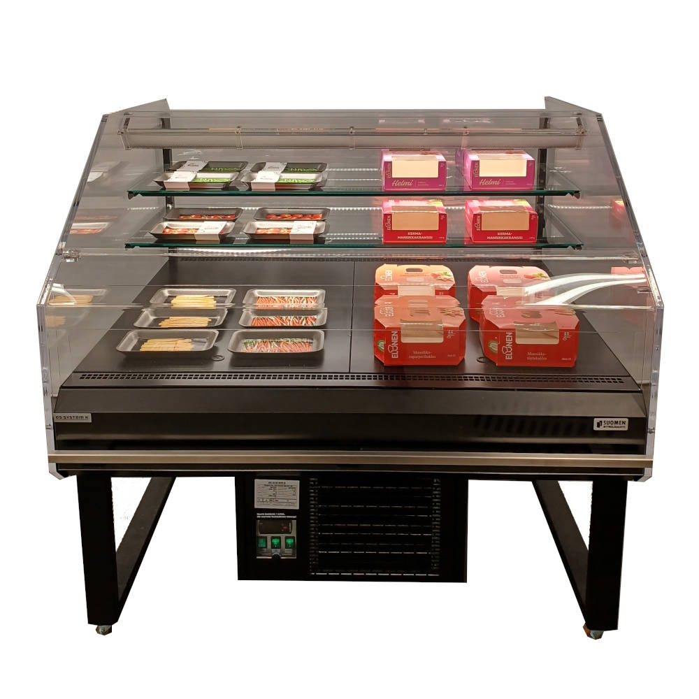 Tuotteet tulevat edustavasti esille läpinäkyvästä kylmäaltaasta ja hyllyille saa rakennettua runsaita ja näyttäviä esillepanoja. Näppärän kokoinen kylmähylly on saatavilla joko 2- tai 3-tasoisena.