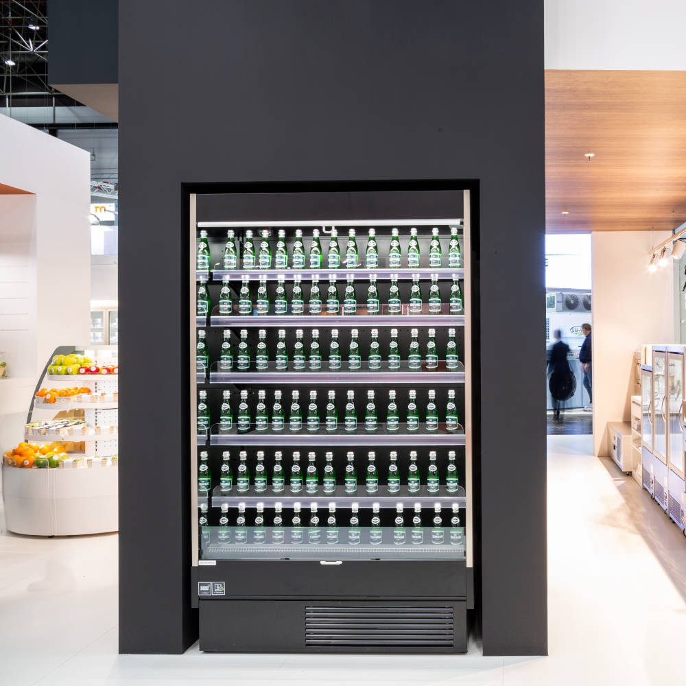 Ominaisuudet Leveys päätyjen kanssa (mm): 2568 Syvyys (mm): 660 Korkeus (mm): 2150 Kylmäaine: R290 Lämpötila-alue: +1...+5 °C (OPT-vers.) / +2...+7 °C Energiankulutus kWh / 24h: 42,54 Energialuokka: E Energy Efficiency Index (EEI): 50 < 65 Paino: 495 Jäähdytetty ala (dm³): 1300