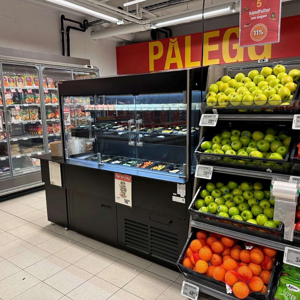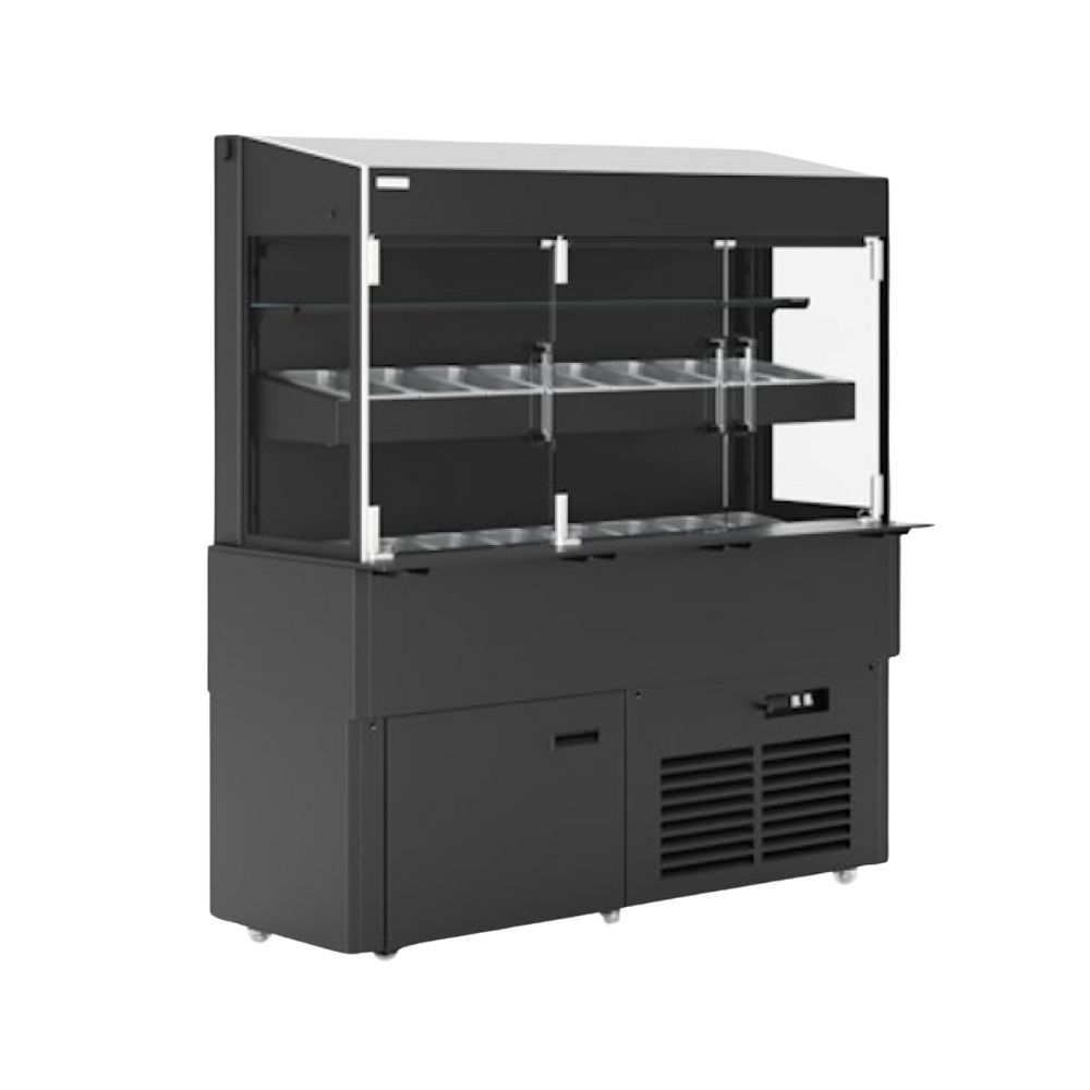 Omakoneinen, kaksitasoinen kylmäkaappi saranaovilla irtosalaattiainesten myyntiin. Malli saatavilla joko yksi- tai kaksipuoleisena kalusteena. Mansan avulla saat näyttävän esillepanon ja runsaasti eri tuotteita esille pienemmällä tilalla kuin perinteisellä salaattibuffalla. Energiatehokas ja näyttävä GN-mitoitettu herätemyyntikaluste vakaalla lämpötilalla. Led-valojen ansiosta tuotteet tulevat hyvin esille. Salaattivitriinin alaosassa erillinen kylmäsäilytystila. Salaattivitriinistä rakennettavissa näyttäviä saarekekokonaisuuksia neutraaleilla lisämoduuleilla.