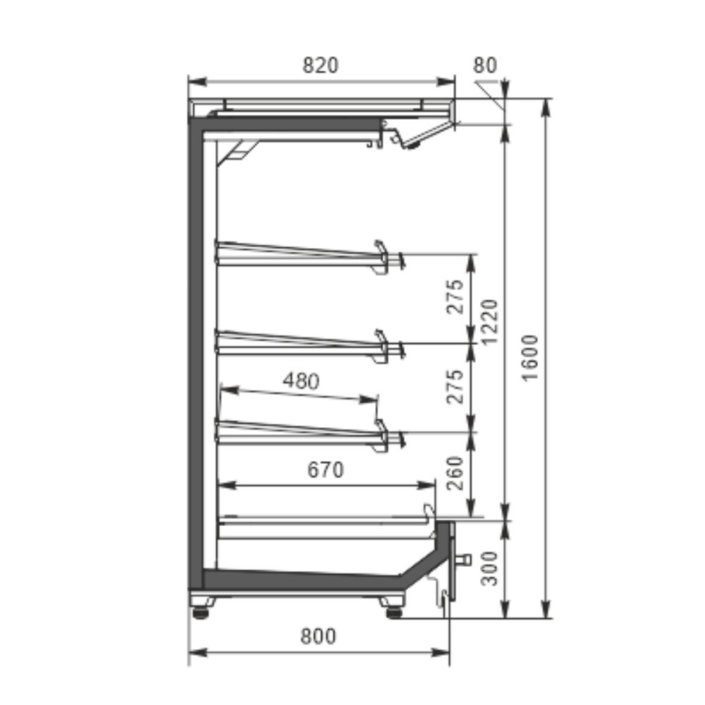 - kolme hyllytasoa metallisella etureunalla sekä lämpövastuksilla