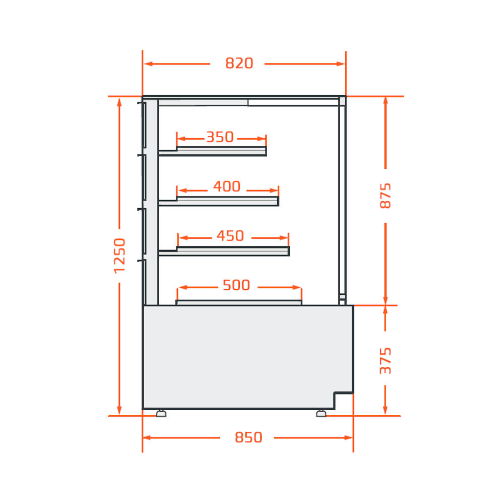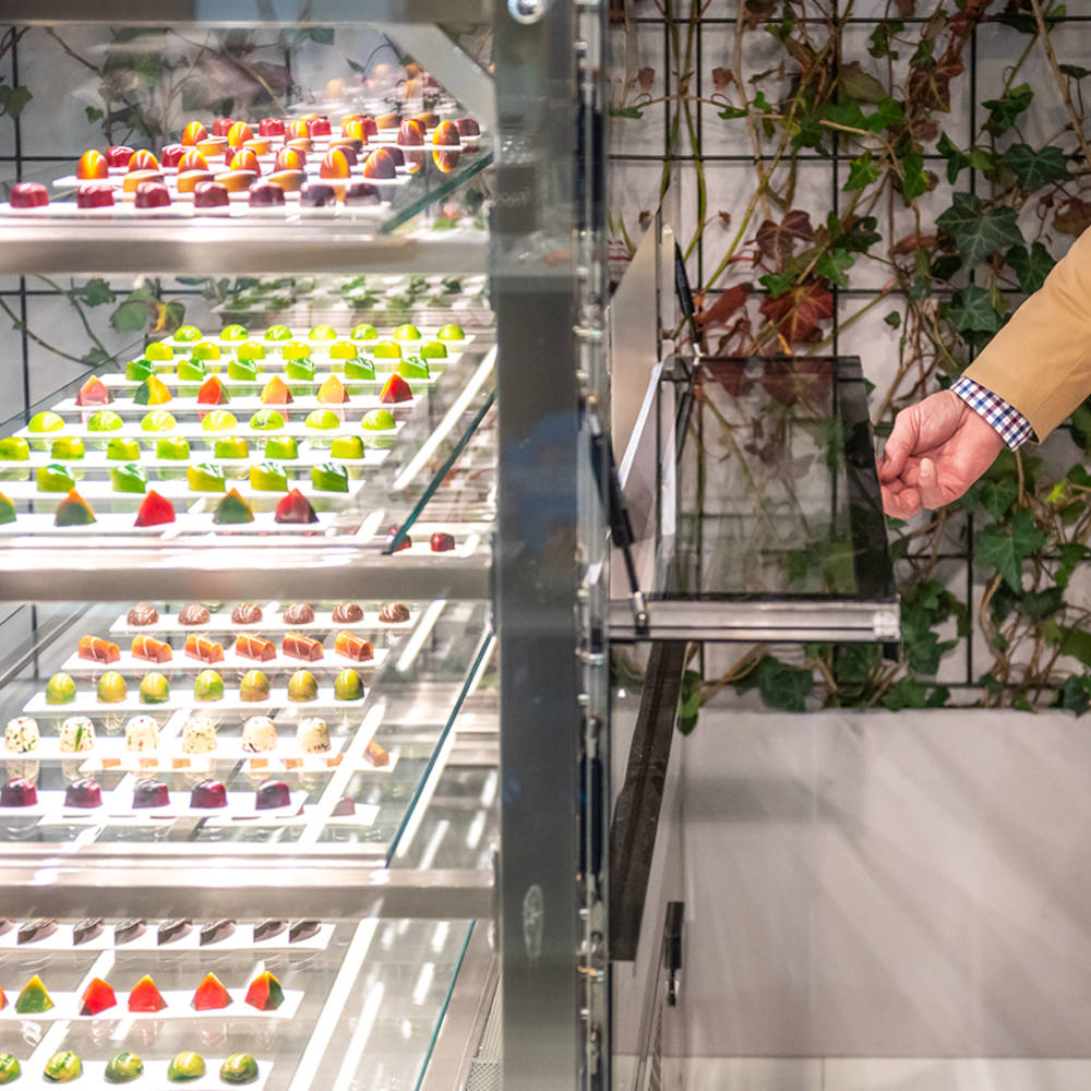 Omakoneinen, A-energialuokan tyylikäs konditoriavitriini. Vitriinin erittäin matala pohjataso ja syvät lasihyllyt mahdollistavat tuotteille runsaan esillepanon. Konditoriavitriinissä on 3 kpl LED-valaistuja lasihyllyjä ja pohjataso. Lasihyllyt liukuvat kalusteen taakse, mikä helpottaa hyllyttämistä. Invertterikompressori vähentää merkittävästi energiankulutusta ja on erittäin hiljainen.