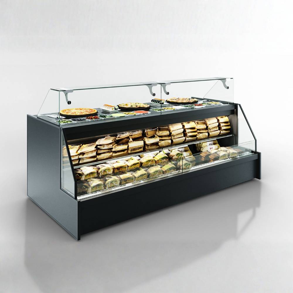 Etuosan kylmähylly on tarkoitettu itsepalvelumyyntiin ja soveltuu erinomaisesti valmiiden annosten lisäksi myös juomien ja muiden tuotteiden esillepanoon. Takapuolen työskentelytila on optimoitu ammattikäyttöön, ja Akira on myös sopivan korkuinen serve-over -palvelukalusteeksi.