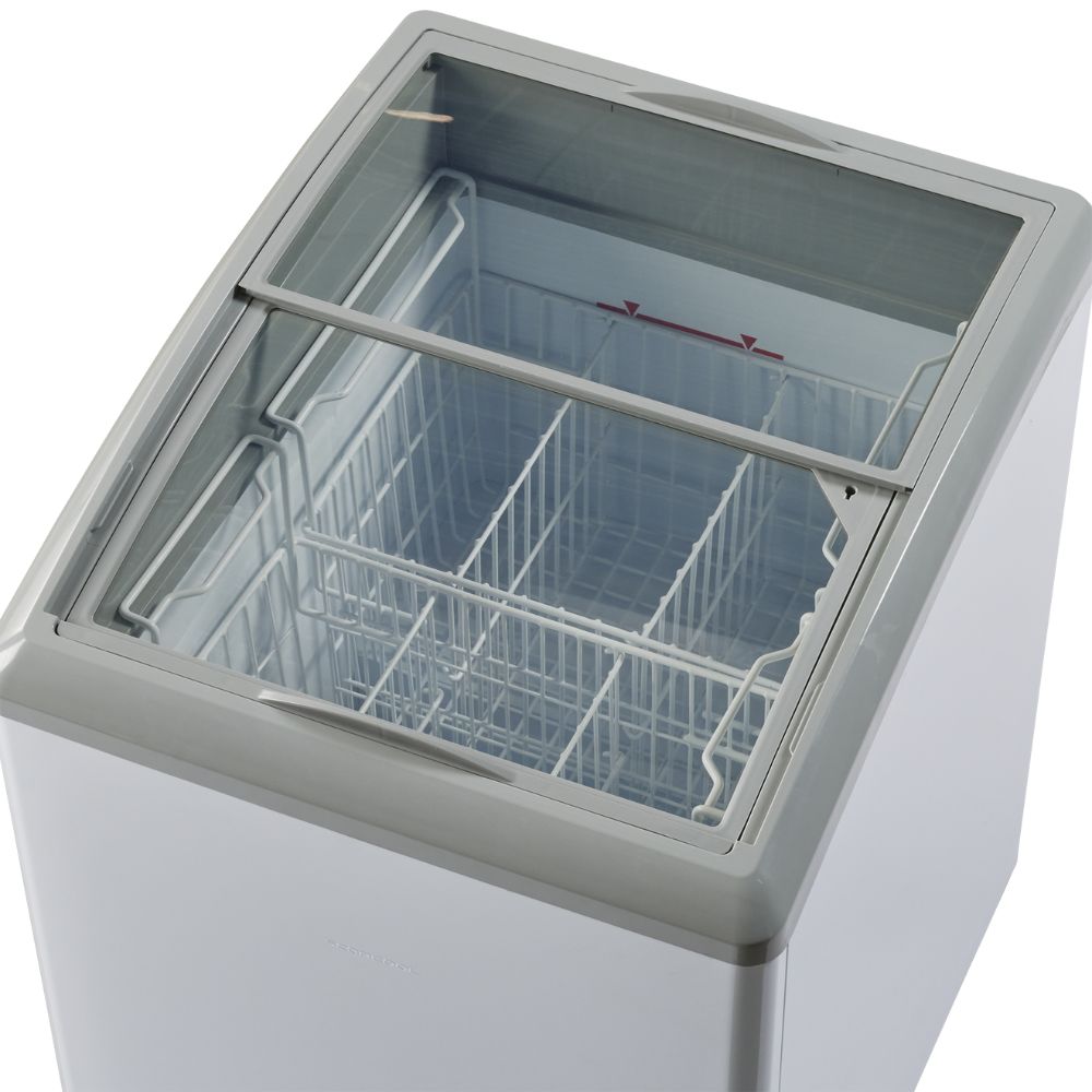 Omakoneinen pakasteallas jäätelölle ja pakastetuotteille. Umpiseinäinen pakasteallas mahdollistaa näyttävät brändäykset promo-kalusteeseen ja tuotelanseerauksiin. Pyörillä liikuteltava pakasteallas, jossa kaarevaprofiilinen liukulasikansi.