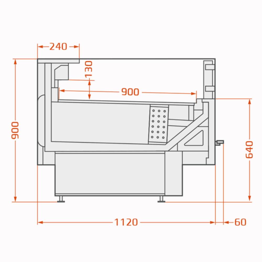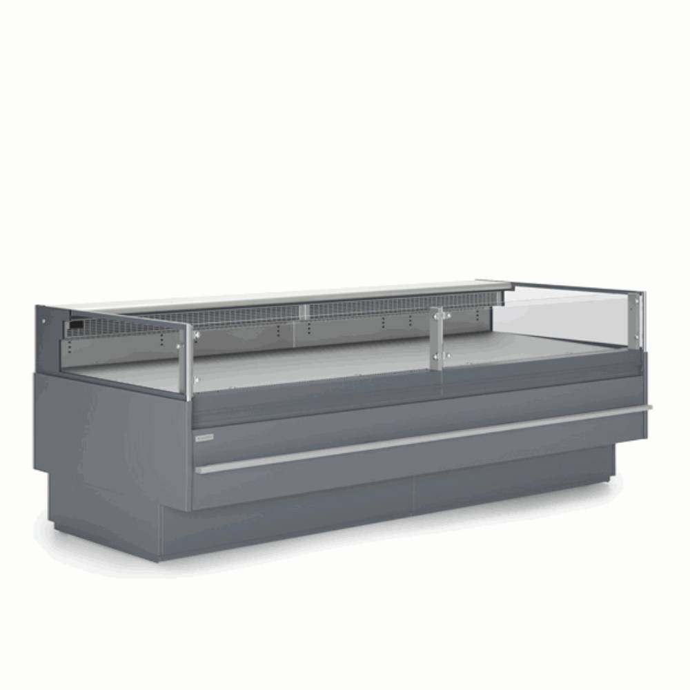 Ominaisuudet Leveys ilman päätyjä (mm): 2500 Leveys päätyjen kanssa (mm): 2580 Syvyys (mm): 1120 Korkeus (mm): 900 Kylmäaine: R290 Lämpötila-alue: +2...+6 °C Energiankulutus kWh / 24h: 16,76 Energialuokka: C Energy Efficiency Index (EEI): 20 < 35 Paino: 305