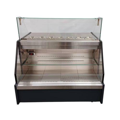 Lämpöhylly Melanie MiniKompaktin kokoinen, puolikorkea lämpöhylly itsepalveluun erilaisille lämpimille take away -tuotteille. Puolikorkea kalustekorkeus, mutta leveä kalustemalli mahdollistaa maksimaalisen esillepanon pieneenkin tilaan.